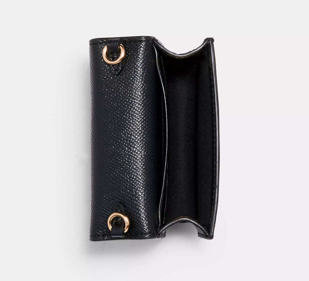 "Here’s the key: a wallet on chain keeps everything on lock. Crafted of metallic crossgrain leather, this mini leather wallet is equal parts durable, fashionable and portable. Finished with a snap closure, it opens to reveal a soft, fabric-lined interior with two card slots and enough space for your cash and other small accessories. Our favorite detail: the elegant detachable chain strap, which can be worn crossbody, or doubled up and carried by the hand or over the shoulder. Mini, but majorly versatile (as if more proof was needed that great things come in small packages). *Top line is repeated verbatim from batch 1 mini wallet copy (Optional 'On A Chain' jokes for button) We would say this mini leather wallet is off the chain, but it's literally on a chain and it's not the 1990s. Send this to ten friends or they will all miss out."