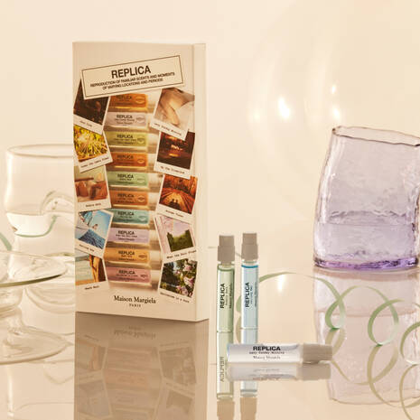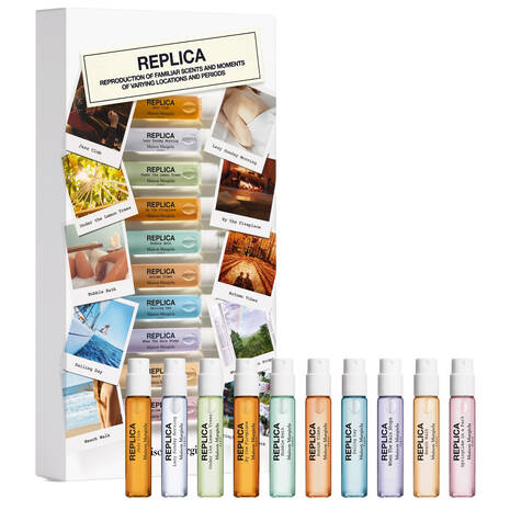 Discover 10 Replica perfume samplers that transport you to treasured moments of the past. This perfume sampler set is a great way to get familiar with some of the best Maison Margiela fragrances. In this Replica Memory Box Exploration set you’ll find Lazy Sunday Morning, Jazz Club, Beach Walk, Sailing Day, Autumn Vibes, By the Fireplace, Bubble Bath, Under the Lemon Trees, Springtime in a Park and When the Rain Stops all sized 2 ml.